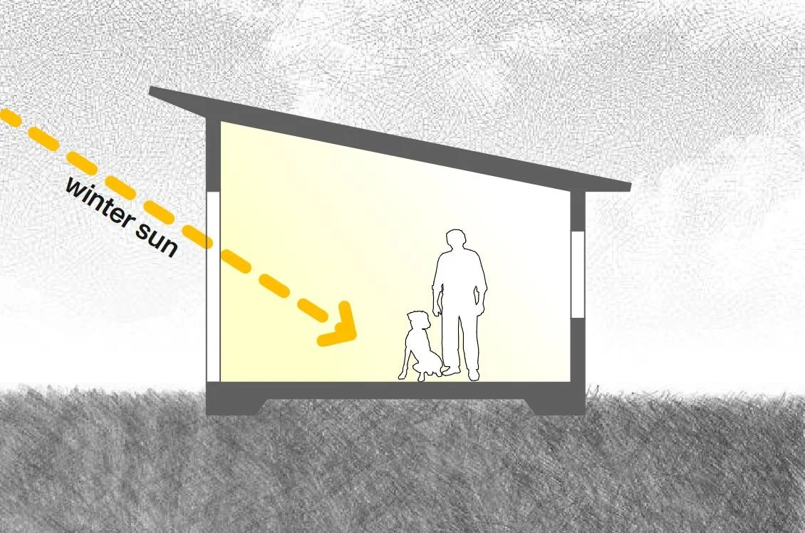 A home should respond to it's positioning within that cube of in relation to seasonal variations. Orientation for passive heating is about using the sun as a source of free home heating by letting winter sun in and keeping unwanted summer sun out. The feeling of a home is influenced by the sun’s path as well as prevailing wind patterns.